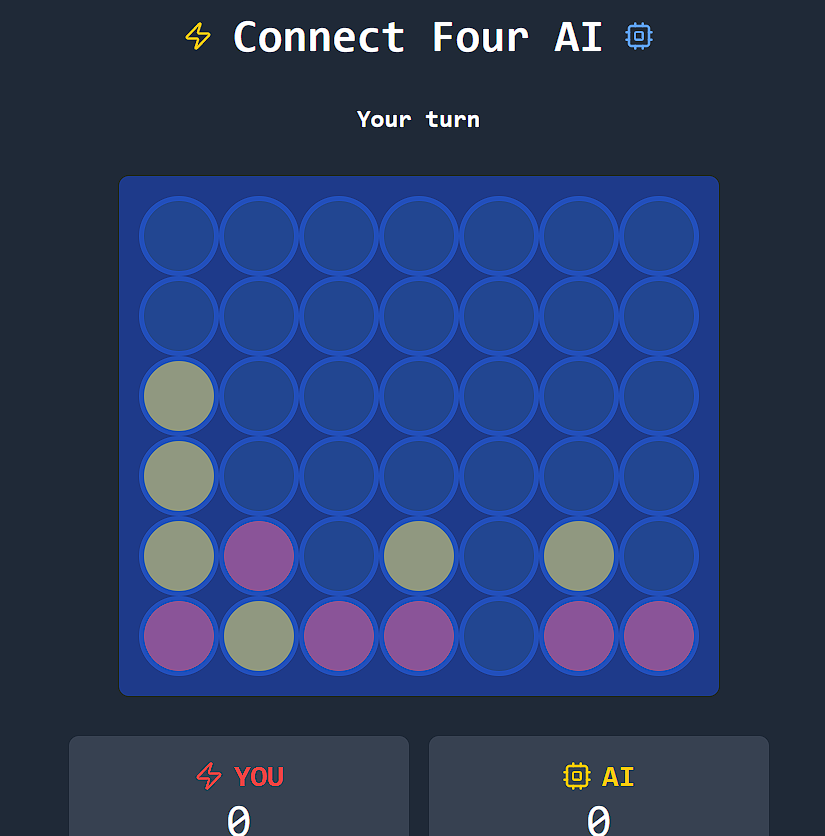 Drop coins into the grid and try to beat AI in a four-in-a-row match.